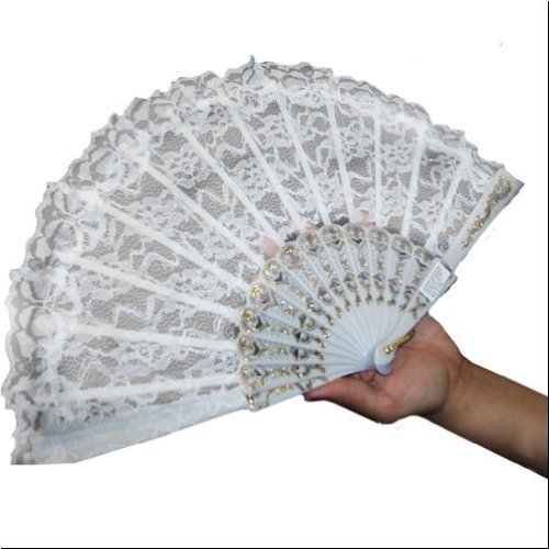 The lace fan has been around for years. It is a collapsible, usually wedge-shaped device made of a light material such as silk, paper or plastic used to create a breeze. This white lace fan is perfect for ladies' costumes, saloon girls, southern belles, and more. This costume accessory is sure to add a look of sophistication to your costume. One Size Fits All