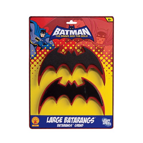 If your Caped Crusader is going to be defending Gotham City and beyond, he will need the tools of the trade! Our Batman the Brave & Bold Batarang Set includes two plastic bat-shaped boomerangs. The large Batarangs are black with bright red trim to match the ones used by Batman on their favorite American superhero cartoon series. This Batman Batarang Set is a toy weapon kit to help transform them into the brave and the bold animated Batman during dress-up play. Batman: The Brave and the Bold is an animated cartoon series that airs on Cartoon Network and features Batman teaming up with heroes from across the universe where no villain stands a chance! This is an officially licensed Batman: The Brave and the BoldTM product by ©DC Comics.