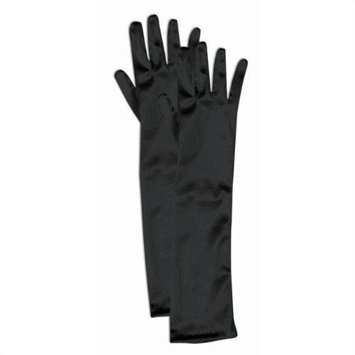 Girls can dress-up their formal dress or costume with our Black Satin Opera Gloves. These sleek black gloves are sassy and sophisticated making them a great accessory for any gothic princess or Victorian vampire child costume! Made of a soft satin, our child gloves are in an opera-style length stretching above the elbow. These long black gloves for kids will allow your young lady to go out with her arms covered and warm. One size fits most kids.